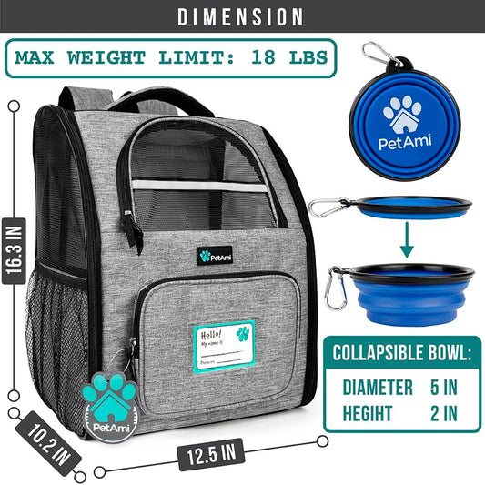 Dog Backpack Carrier for Small Large Cat, Pet, Puppy, Ventilated Pet Hiking Backpack Travel Bag, Airline Approved Cat Backpack Carrier, Camping Biking Dog Bag up to 18Lbs Pet, Grey